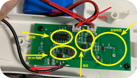 通過上圖電路按照噪聲源可劃分為電源(DCDC)、控制(轉(zhuǎn)速調(diào)整)、執(zhí)行(馬達驅(qū)動)、電機。