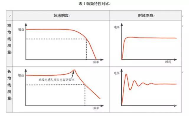 探頭地線在電路中增加了分布電感;地線越長,電感越大,與探頭的電容形成諧振頻點(diǎn),會在快沿脈沖上產(chǎn)生明顯過沖減幅振蕩。因此測量高頻信號時(shí),探頭接地線越短越好。