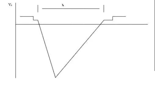 汽車內(nèi)使用的各種類型的電機(jī)都屬于感性負(fù)載。如:雨刮器驅(qū)動電機(jī),汽車啟動電機(jī),熱風(fēng)電機(jī)等。這類負(fù)載特性電路如圖3。當(dāng)感性負(fù)載的供電被忽然切斷時,會產(chǎn)生反向瞬變電壓Vc,如圖4。線圈初始儲能越大,關(guān)斷速度越快,瞬變過電壓就越高。實(shí)測結(jié)果,一般Va 為-100~-300V,ts 為0.2~0.5s。