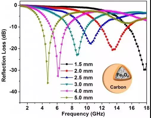 6、核殼結(jié)構(gòu)Fe3O4@C復(fù)合材料的殼體厚度對(duì)吸波性能的影響